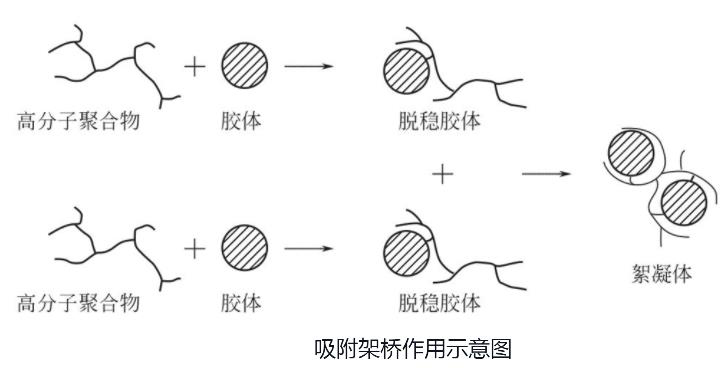 與其他高分凝聚劑的作用機(jī)理一樣,聚丙烯酰胺PAM對(duì)水中分散體主要為吸附架橋作用和電中和作用: